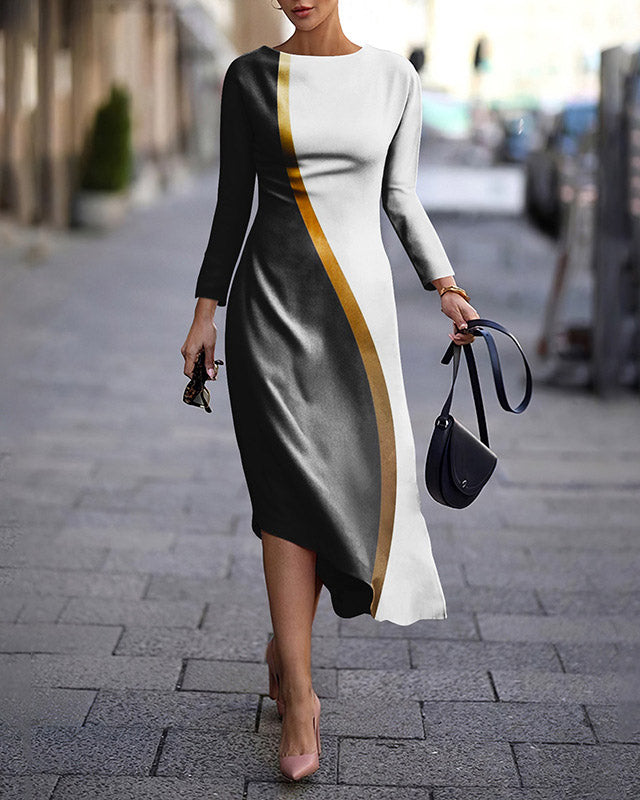 Long Sleeve Slim Fit Printed Dress