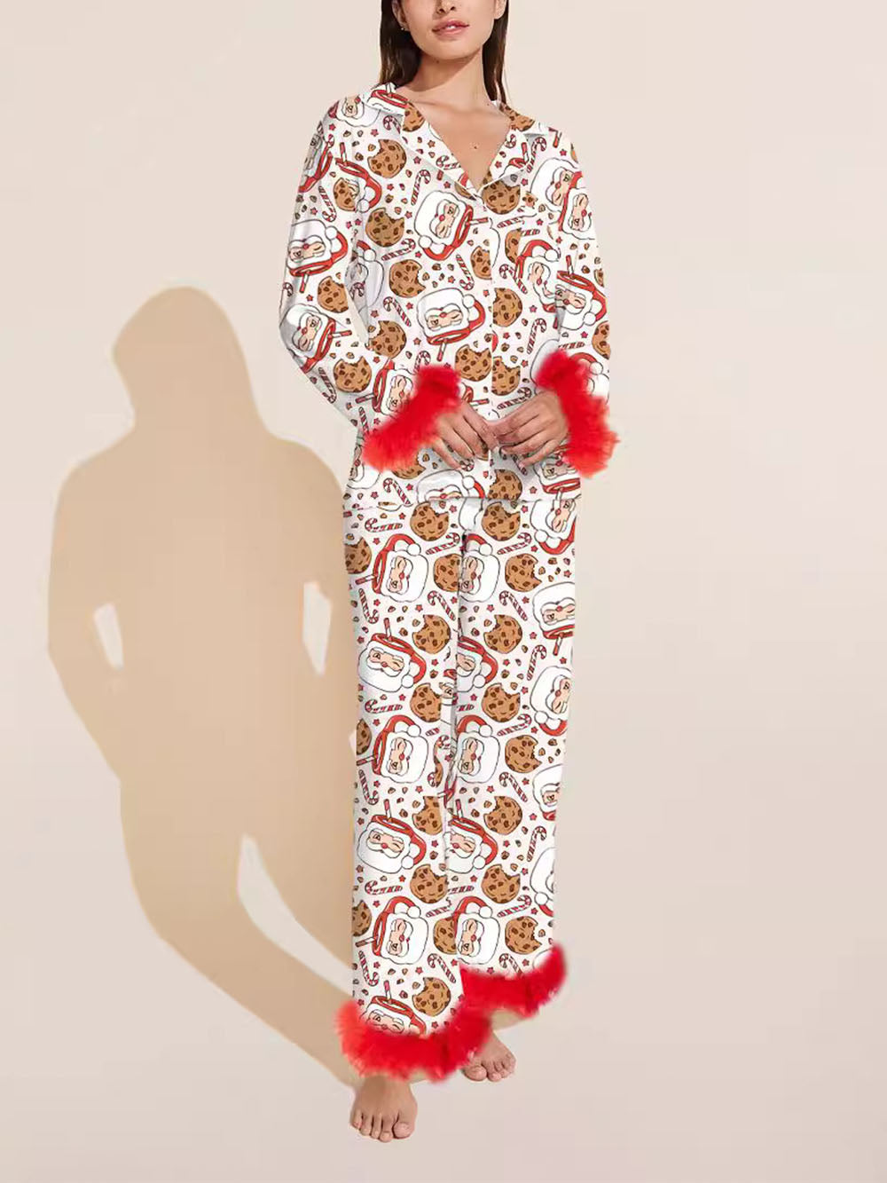 Christmas Elk Print Long Sleeve Parent-Child Wear Pajamas Home Clothes Set