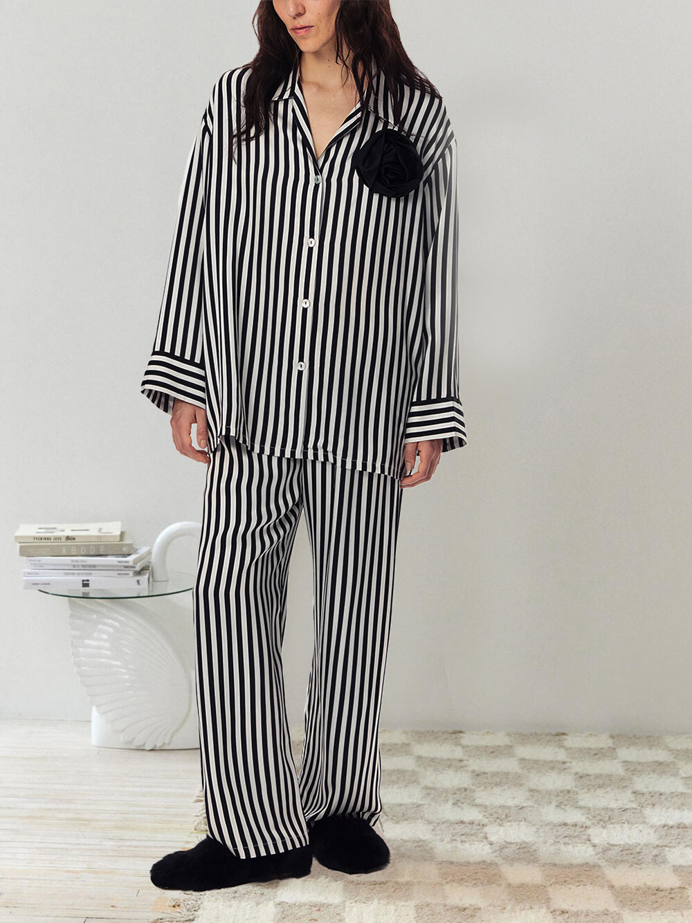 Loose Oversized Satin Printing Pajama Set