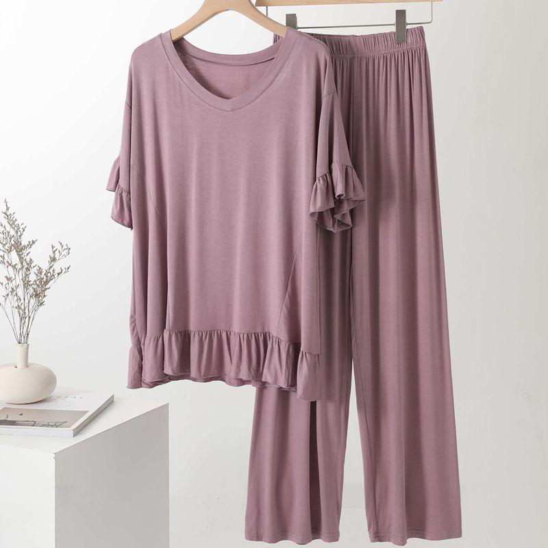 Modal Thin V Wide-Leg Pants Two-Piece Pajamas Indoor Clothes
