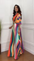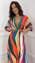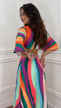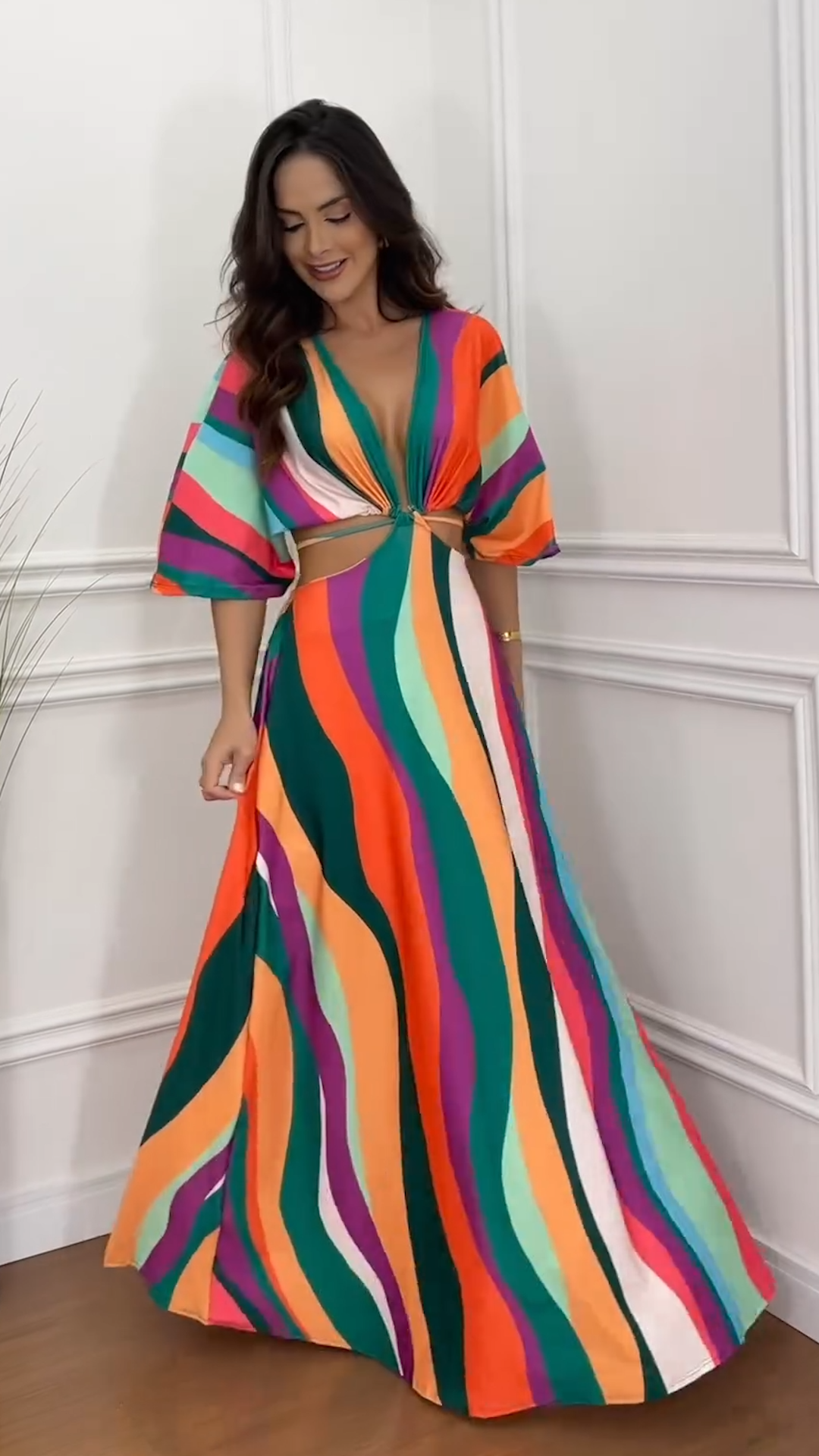 Rainbow Stripes Plunge Cut-Out Maxikjole
