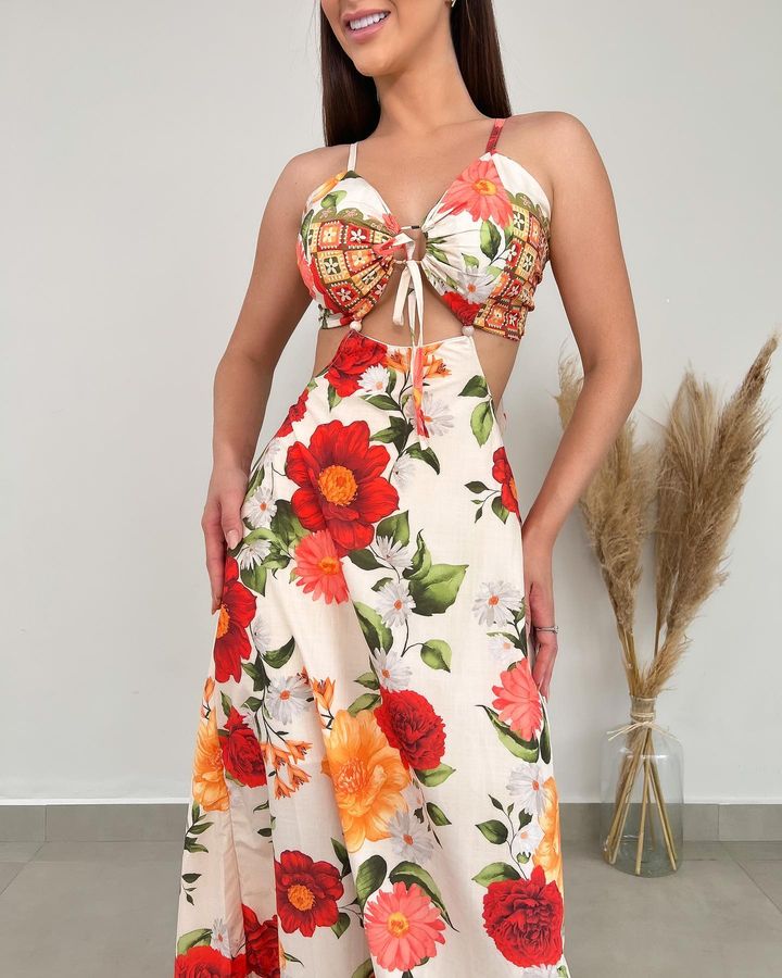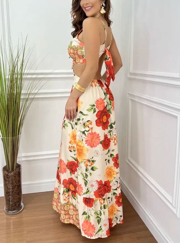 MONET Blooming Rose Tie Back Cut-out Maxi Dress