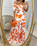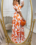 | Product Name | Off-the-shoulder Printed Cutout Lace-up Dress | |||||