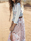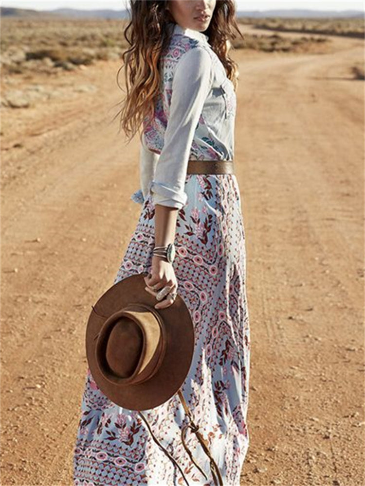 Boho Floral Flap Pocket Maxi Shirt Dress