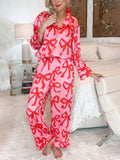 Bow Print Lapel Home Pajamas Set