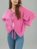 Cozy Oversized Knit Cardigan with Lace-Up Front - Perfect for Fall and Winter