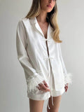 Fashionable And Simple Home Wear Cardigan And Shorts Pajamas Set