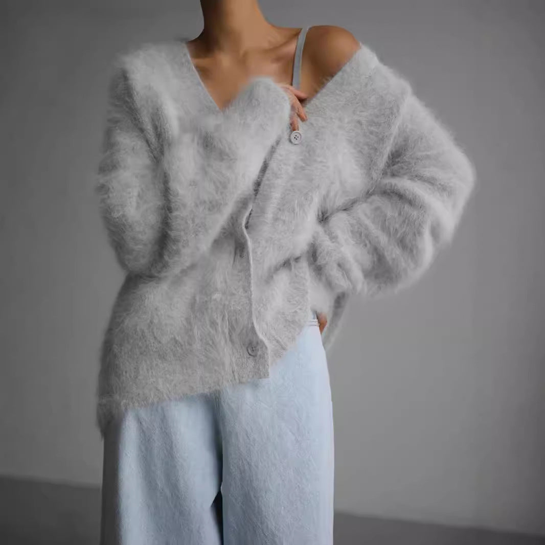 Fluffy V-Neck Cardigan - Soft and Stylish for Cozy Days