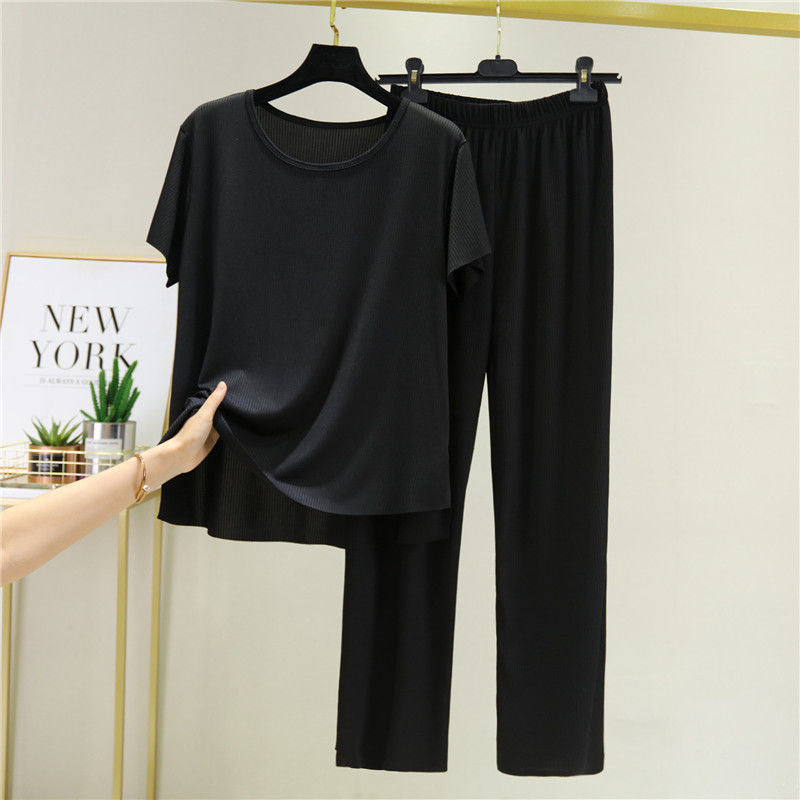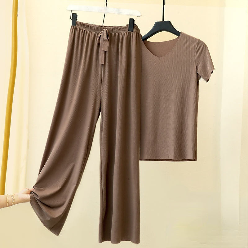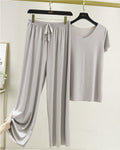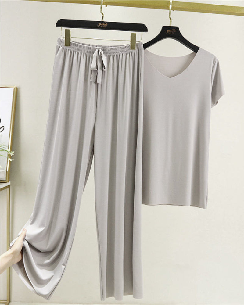 Ice Silk Pajamas Set Modal Wide-Leg Pants Short Sleeve Two-Piece Suit