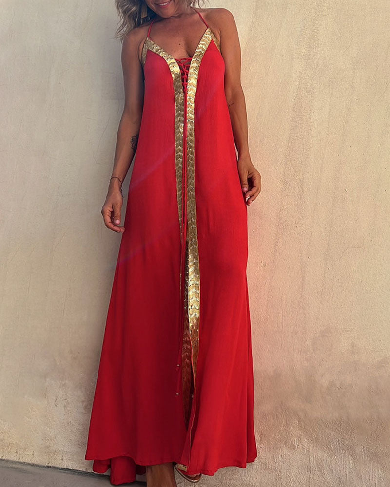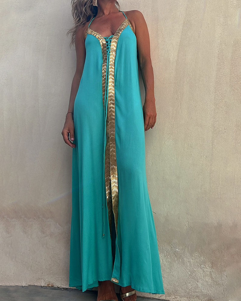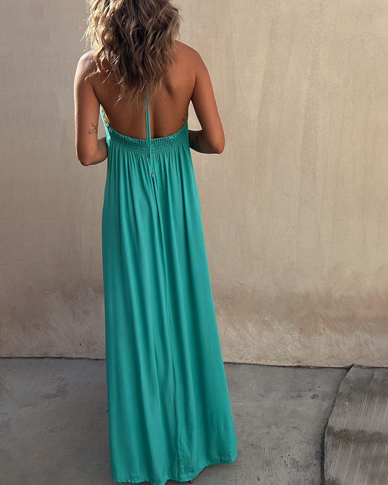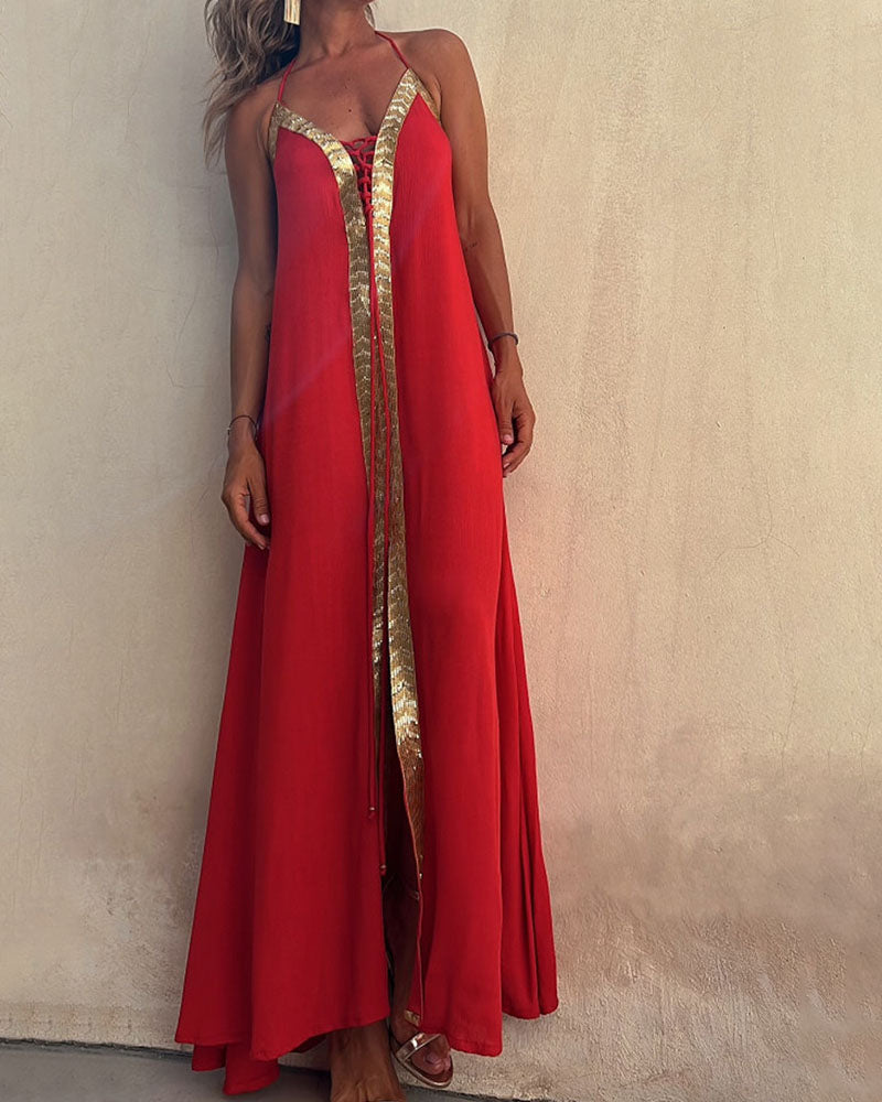 Lace Halter Neck Casual Resort Swing Dress