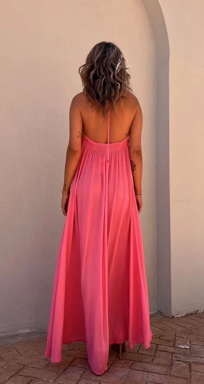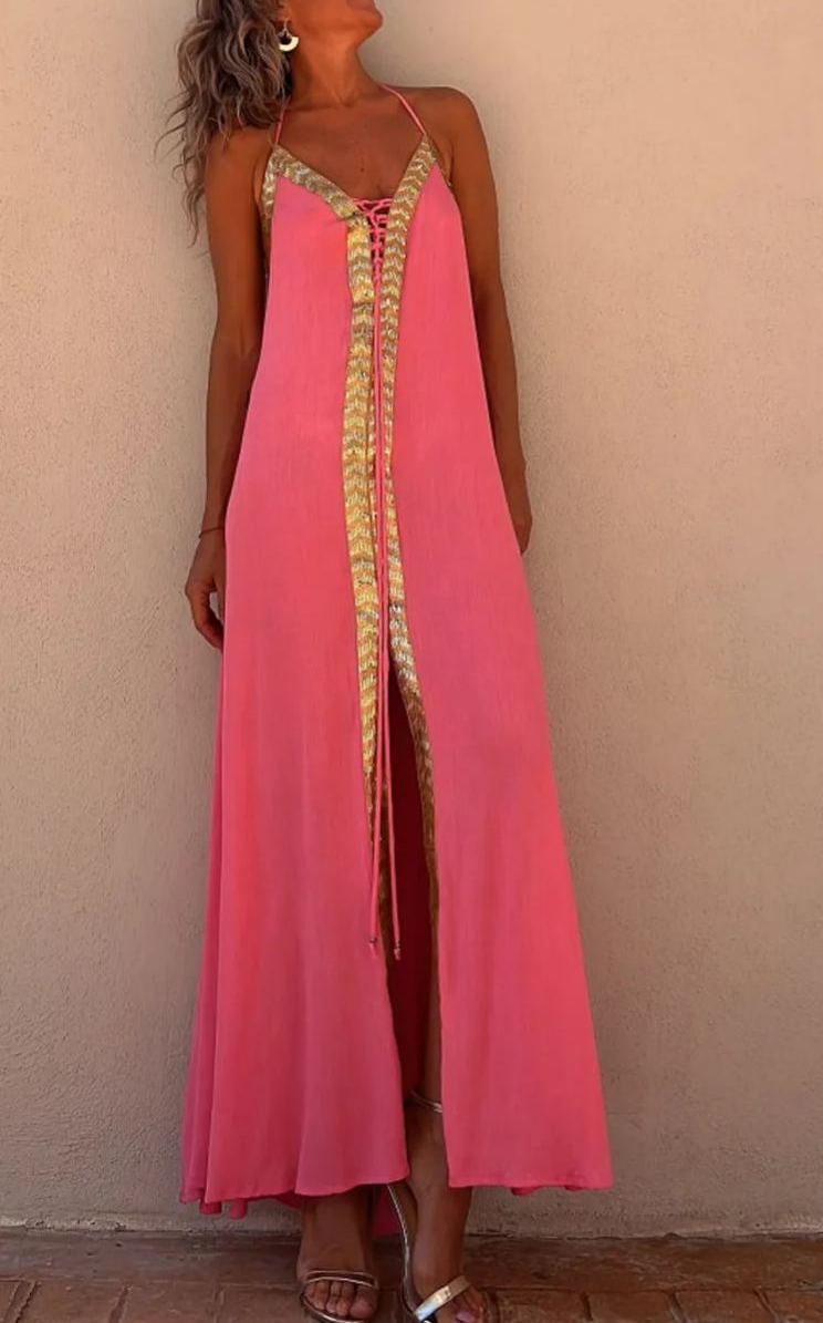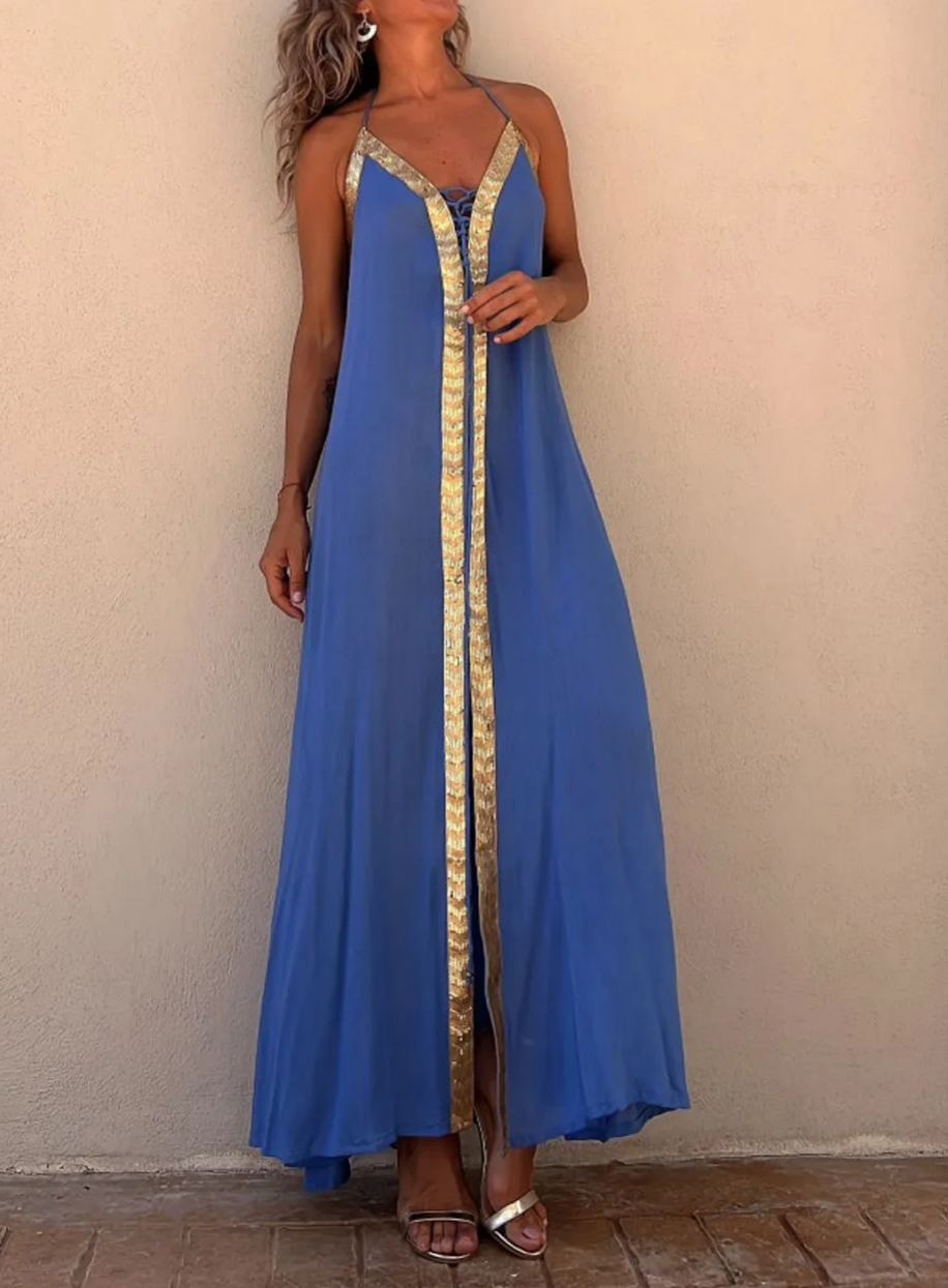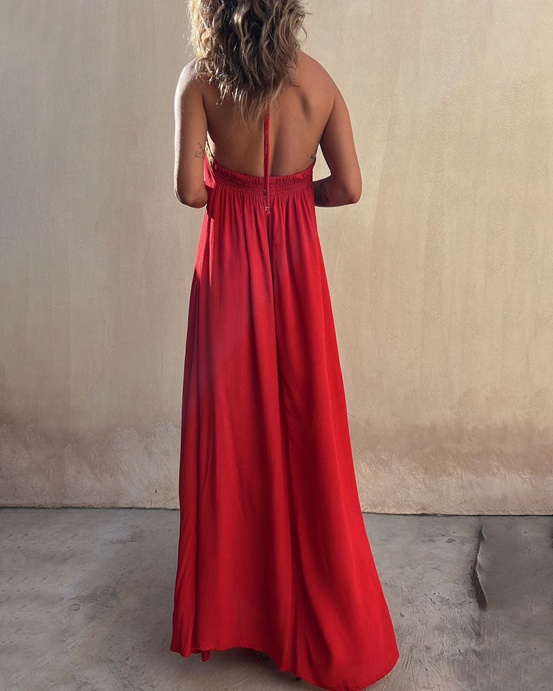 Lace Halter Neck Casual Resort Swing Dress