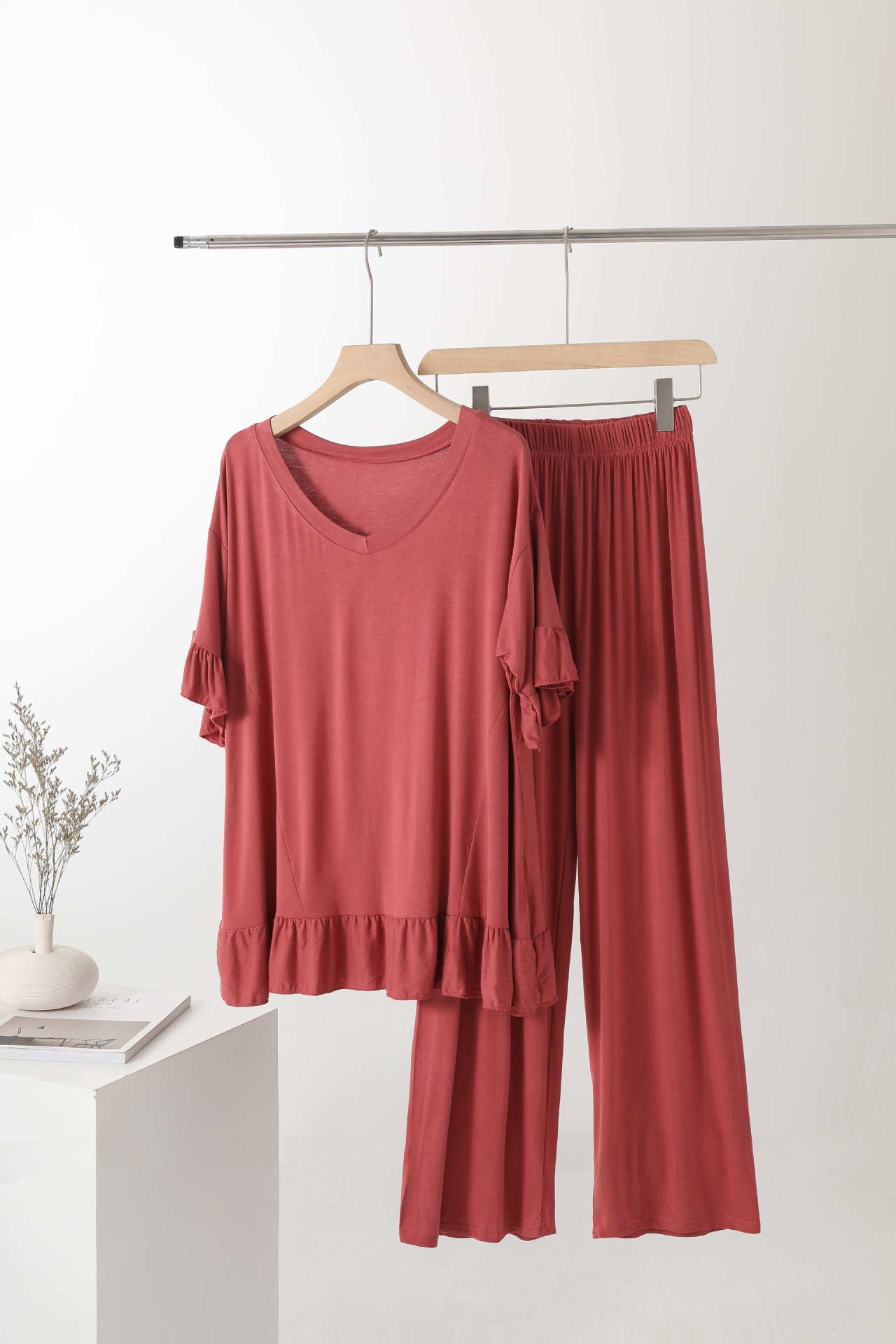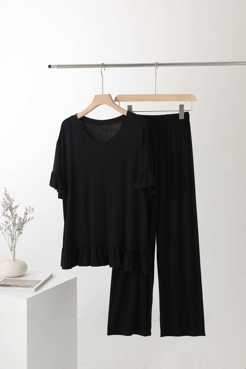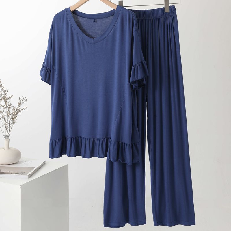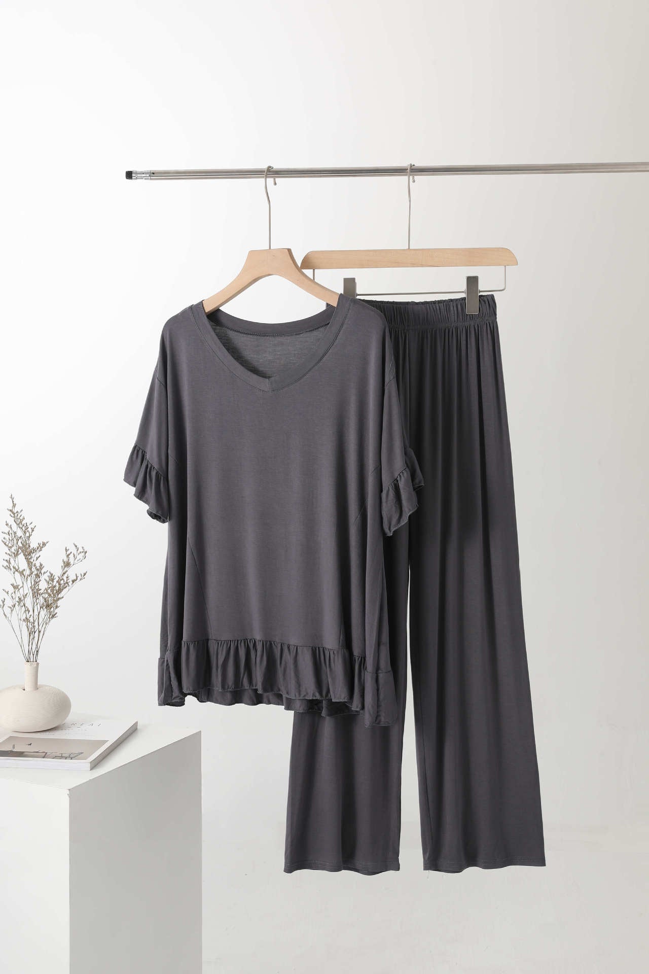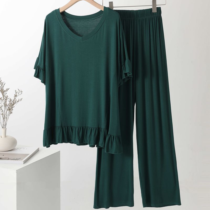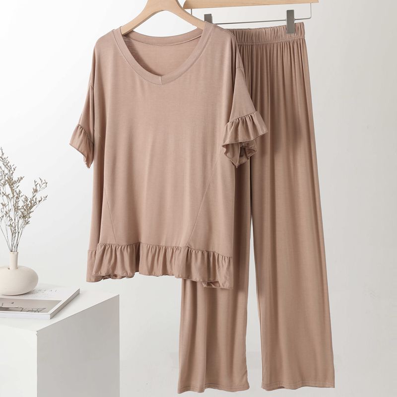 Modal Thin V Wide-Leg Pants Two-Piece Pajamas Indoor Clothes
