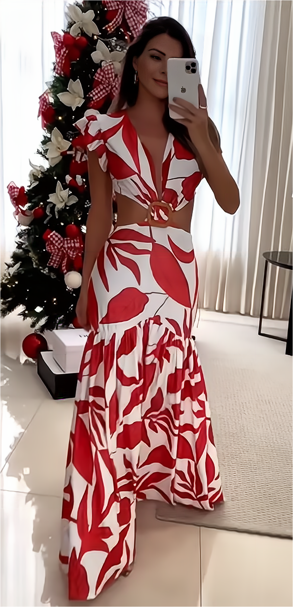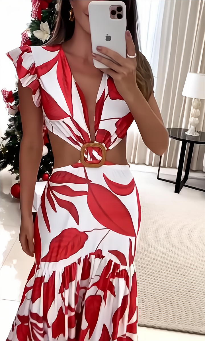 Sexy Fashion Leaky Waist V Neck Backless Butterfly Maxi Dresses